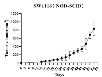 腫瘤接種數(shù)據(jù):NOD-Scid小鼠可用于多種腫瘤接種實(shí)驗(yàn)。已進(jìn)行100+腫瘤細(xì)胞成瘤性驗(yàn)證的試驗(yàn)中,高達(dá)84%的腫瘤細(xì)胞在NOD-Scid中成瘤率100%。部分腫瘤細(xì)胞接種生長(zhǎng)曲線如下。